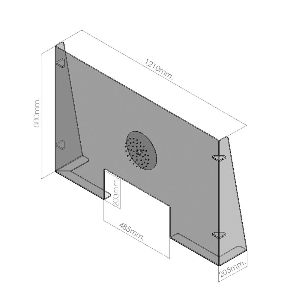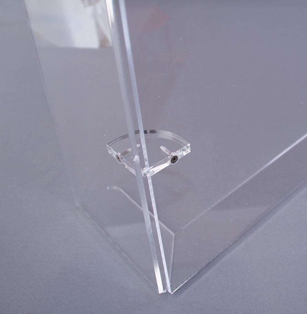 Mampara protectora para mostrador o mesa. Fabricada en metacrilato incoloro (transparente) de 0,5cm de espesor. Con protección frontal y laterales. Desmontable gracias a su sistema de montaje mediante tornillos.